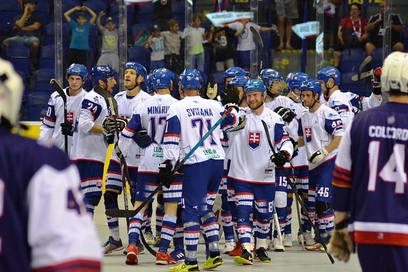 Slovenskí hokejbalisti zvíťazili v sobotu vo svojom druhom zápase na MS v Košiciach nad USA 3:2 po predĺžení. Američania viedli po góloch Denisa Hickeya a Jonnyho Ruiza 2:0, Slováci však po góloch Milana Vozára a Libora Teplického vyrovnali na 2:2. V predĺžení napokon rozhodol Patrik Svitana.